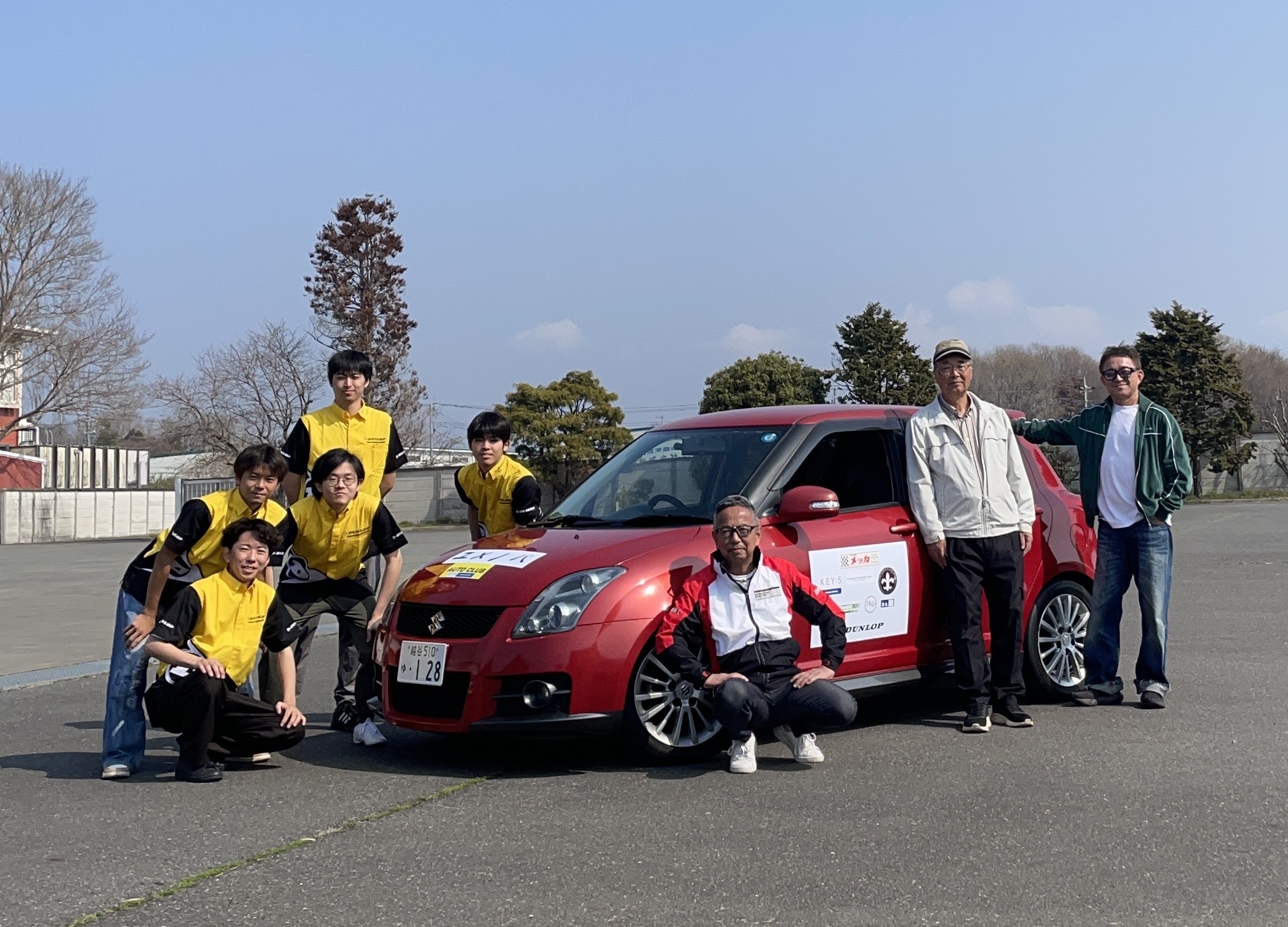 明治学院の学生を主体としたAuto Clubは3/29から3/30にかけて茨城県 筑西市 ザ・ヒロサワ・シティ内のテーマパーク「ユメノバ」にて春休み合宿を実施しました。クラブでの合宿は初の試みであり、ザ・ヒロサワ・シティを運営する広沢商事株式会社様にご協力いただき、今回のジムカーナ練習合宿が実現しました。活動開始前に明治学院大学の卒業生である小堤兵吾氏によりご提供いただいたスイフトスポーツ(ZC31型)の寄贈式が執り行われました。また同じく、本校の卒業生であり現役レーシングドライバーの木下 隆之氏を特別講師に迎え、学生がプロから走り方を直接、学べる絶好の機会となりました。